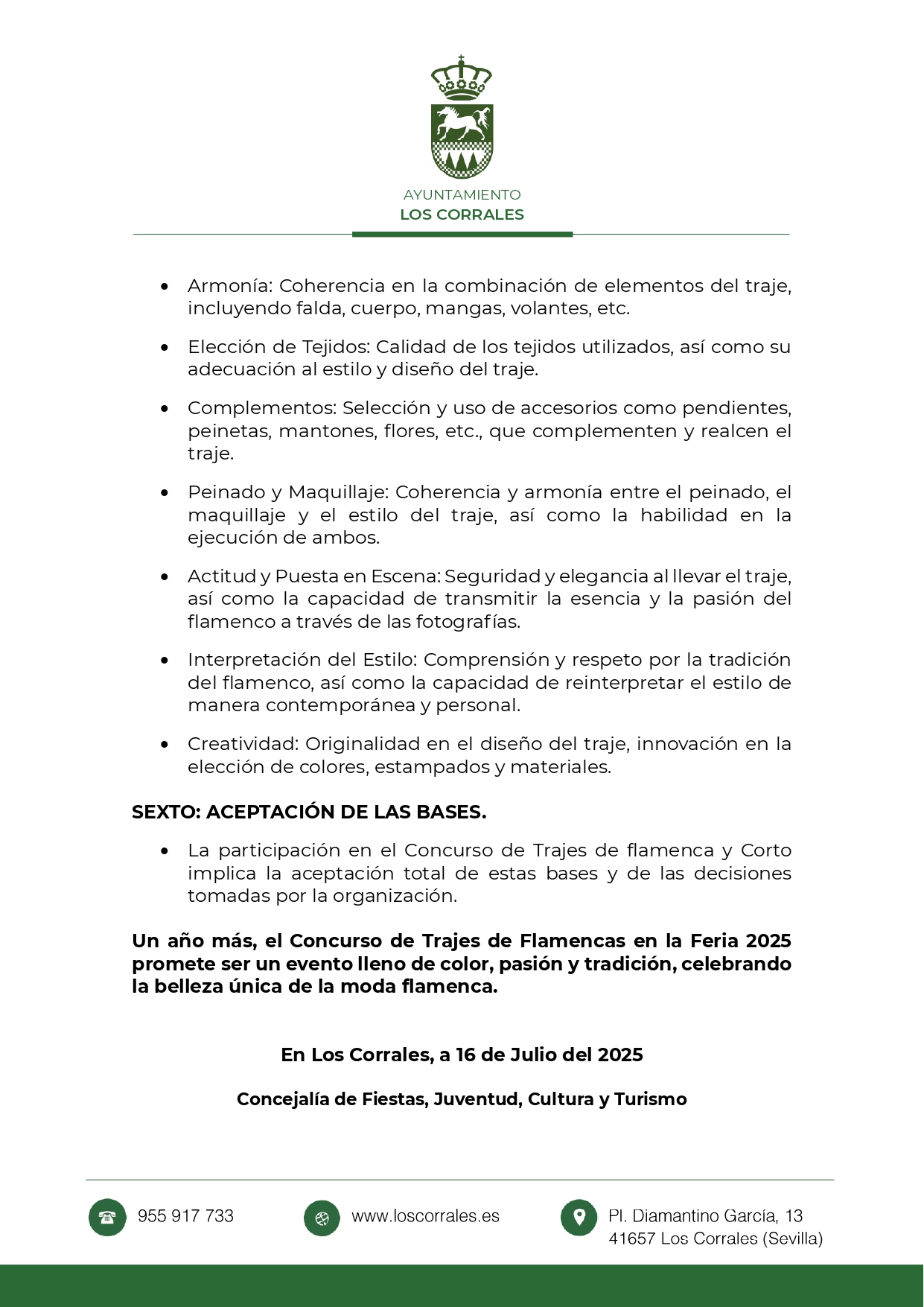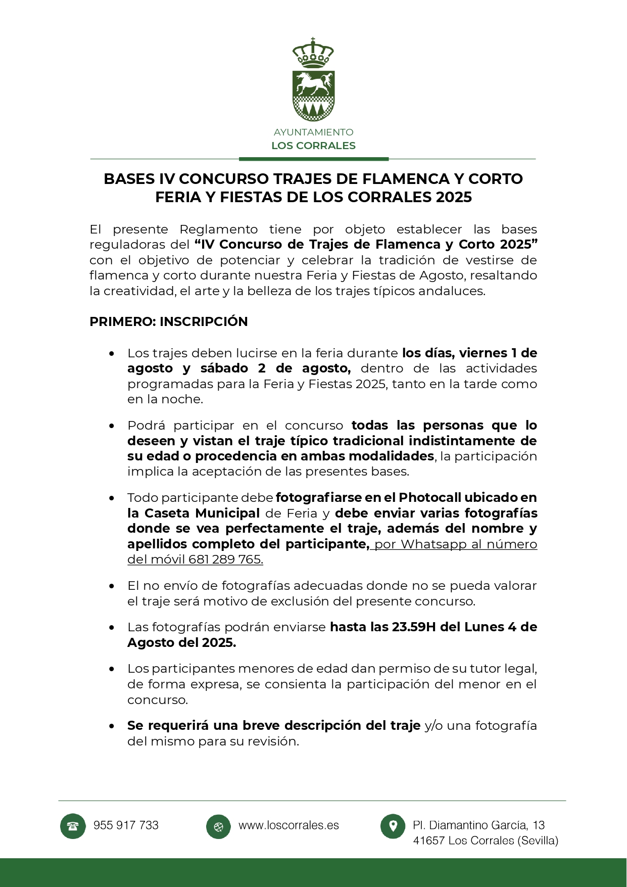 BASES IV CONCURSO TRAJES DE FLAMENCA Y CORTO - FERIA Y FIESTAS 2025