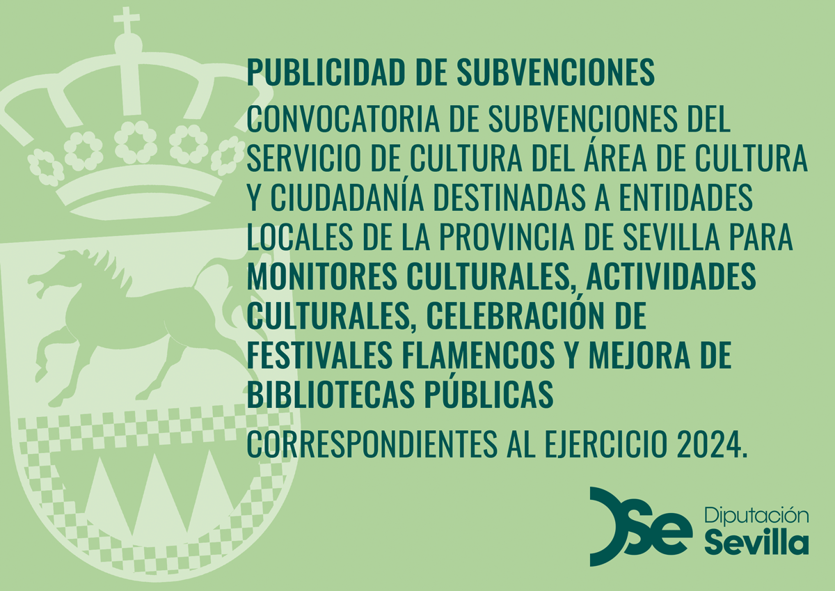 PUBLICIDAD DE SUBVENCIONES DEL PROGRAMA DE SERVICIO DE CULTURA PARA DE "ACTIVIDADES CULTURALES 2024", "MONITORES CULTURALES 2024", "MEJORA DE BIBLIOTECAS PÚBLICAS 2024" Y "CELEBRACIÓN DE FESTIVALES FLAMENCOS 2024", EJERCICIO 2024.