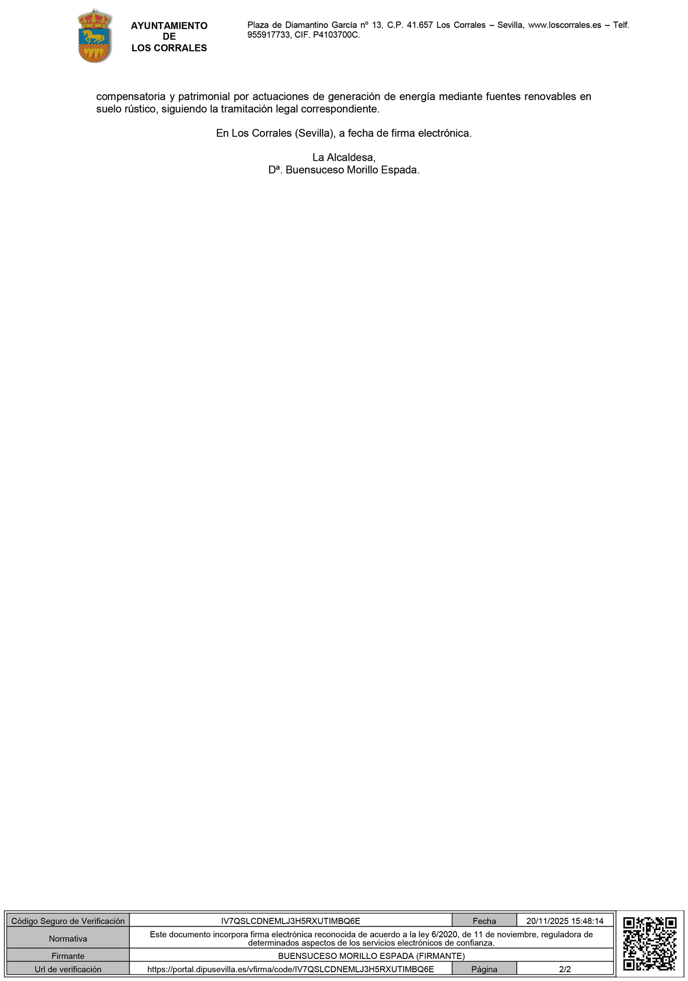 ORDENANZA REGULADORA DE LA PRESTACIÓN COMPENSATORIA Y PATRIMONIAL POR ACTUACIONES DE GENERACIÓN DE ENERGÍA MEDIANTE FUENTES RENOVABLES EN SUELO RÚSTICO. Expediente: 2025/TAB_01/000414