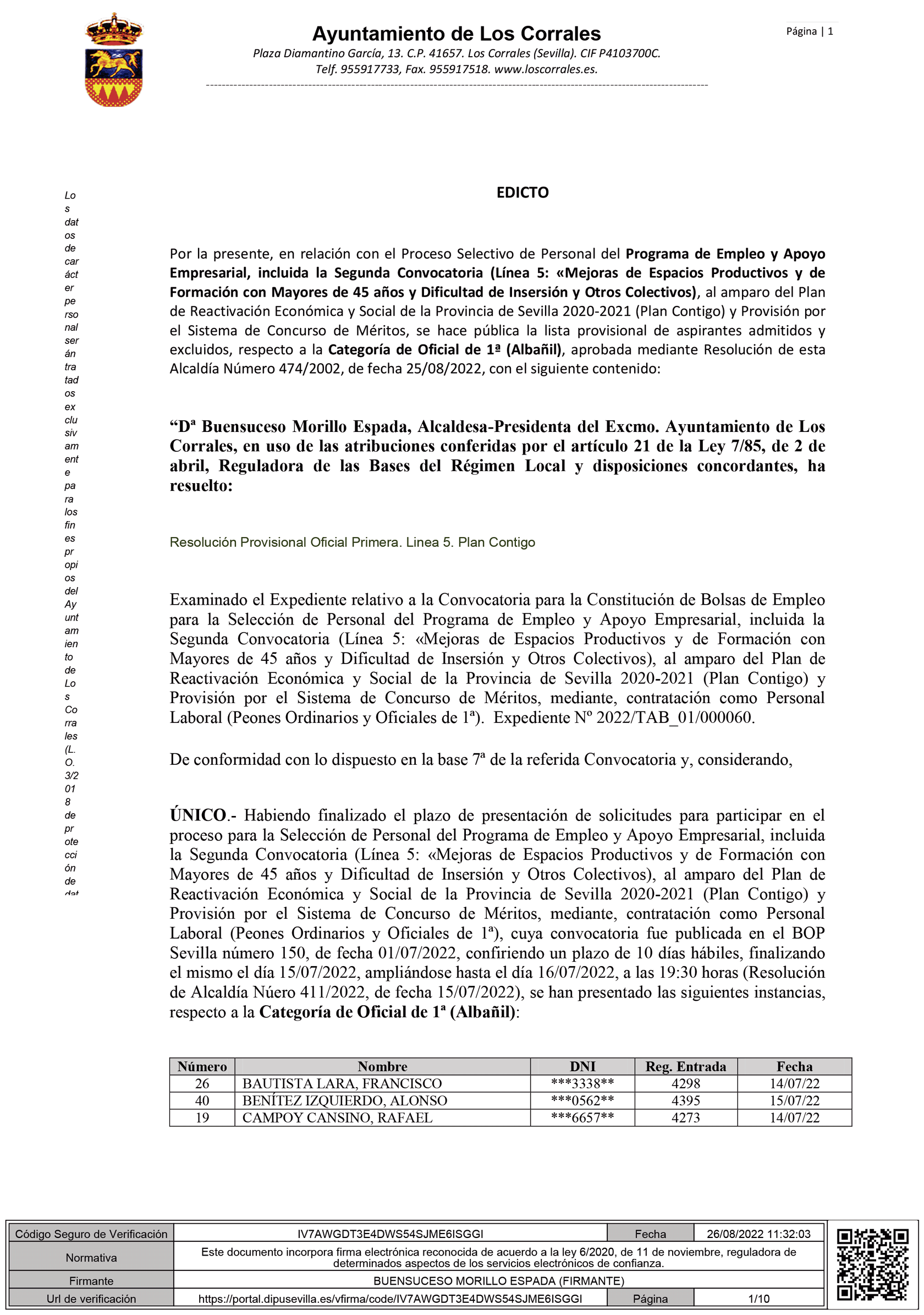Se hace pública la lista provisional de aspirante admitidos y excluidos, respecto a la Categoría de OFICIAL DE 1ª (ALBAÑIL)