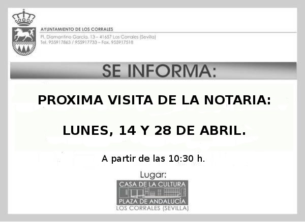 Proxima visita de la notaria, lunes 14 y 28 de Abril.