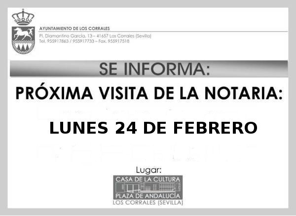 Proxima visita de la notaria. Lunes 24 de Febrero por la mañana en la Casa de la Cultura.