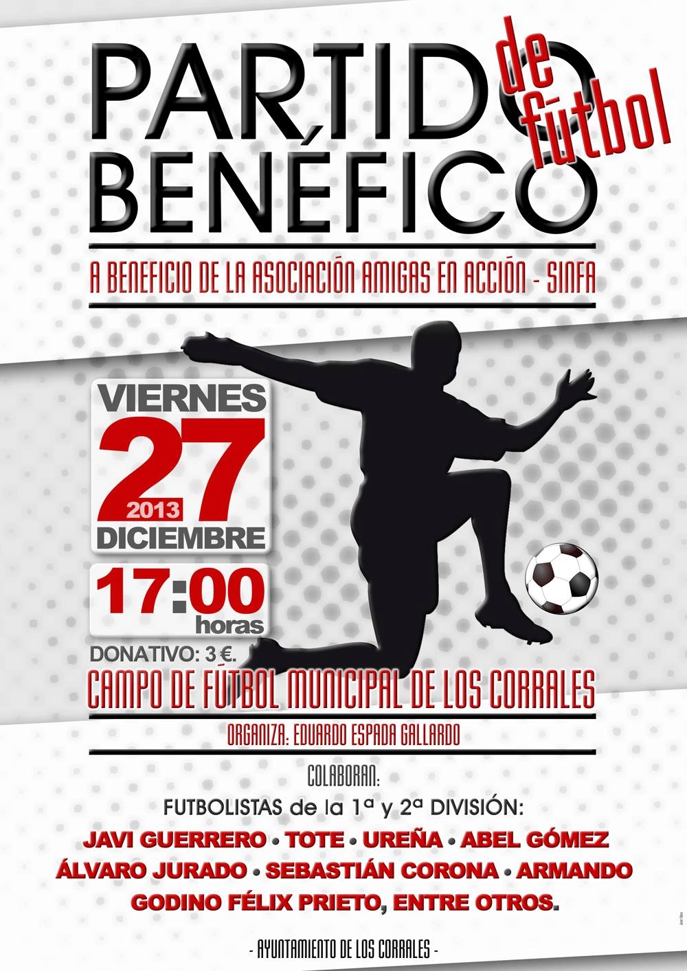 PARTIDO DE FUTBOL BENEFICO SINFA. Viernes 27 de Diciembre a las 17:00 horas en el Campo de Fútbol Municipal