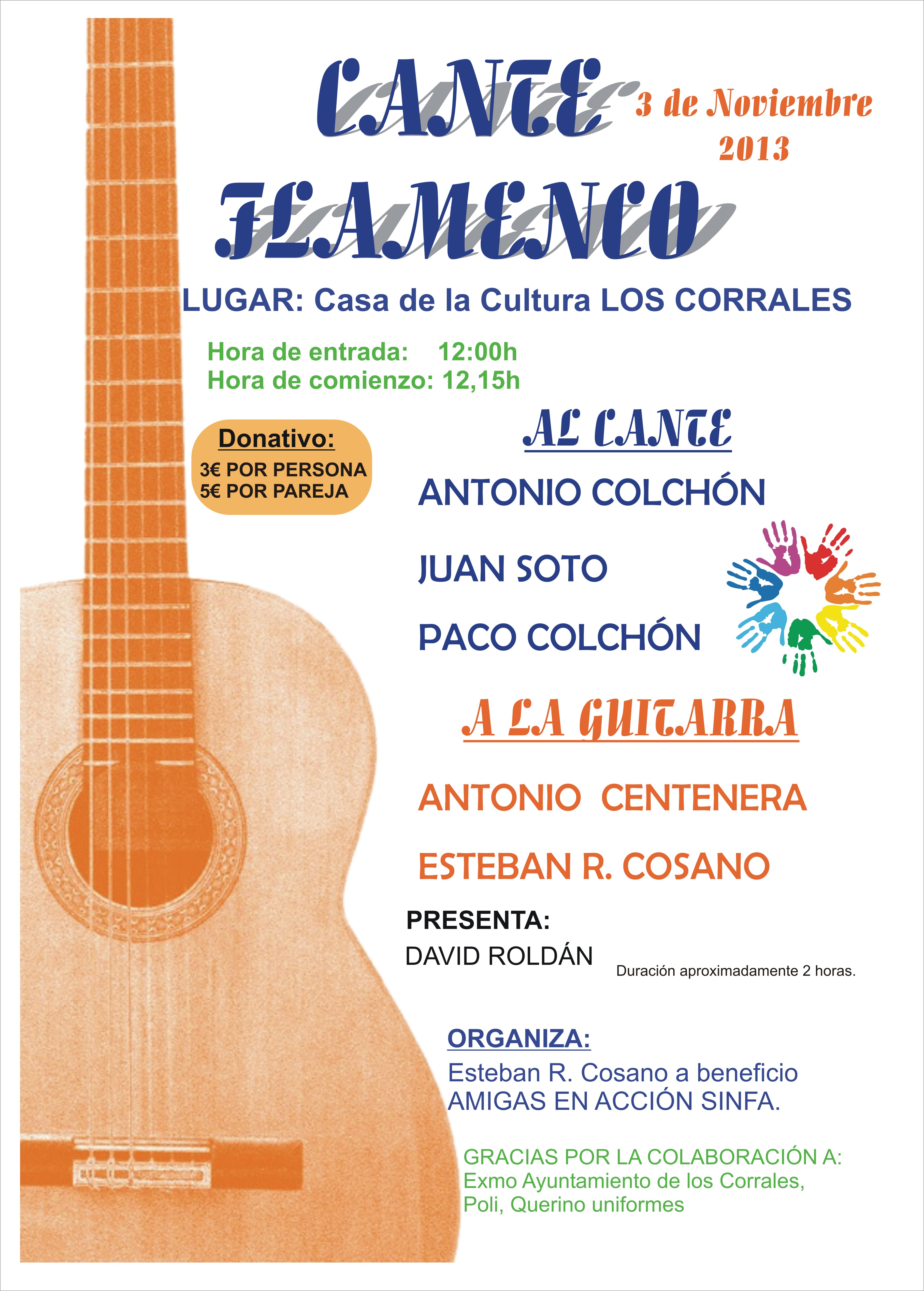 Domingo 3 de Noviembre a las 12:15 horas en la CASA DE LA CULTURA. Organiza Esteba R. Cosano a beneficio de AMIGAS EN ACCION SINFA. Colabora Ayuntamiento de Los Corrales.