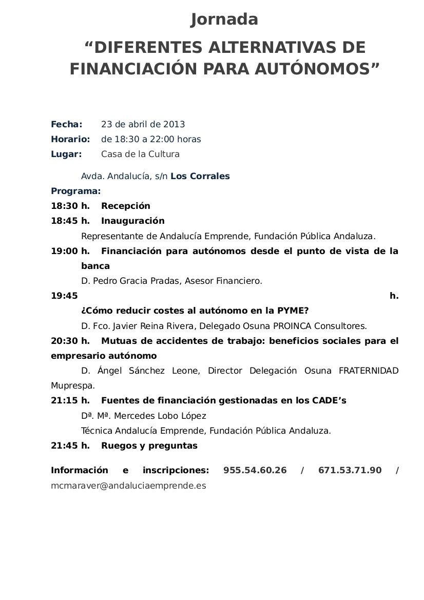 Jornada DIFERENTES ALTERNATIVAS DE FINANCIACIÓN PARA AUTÓNOMOS