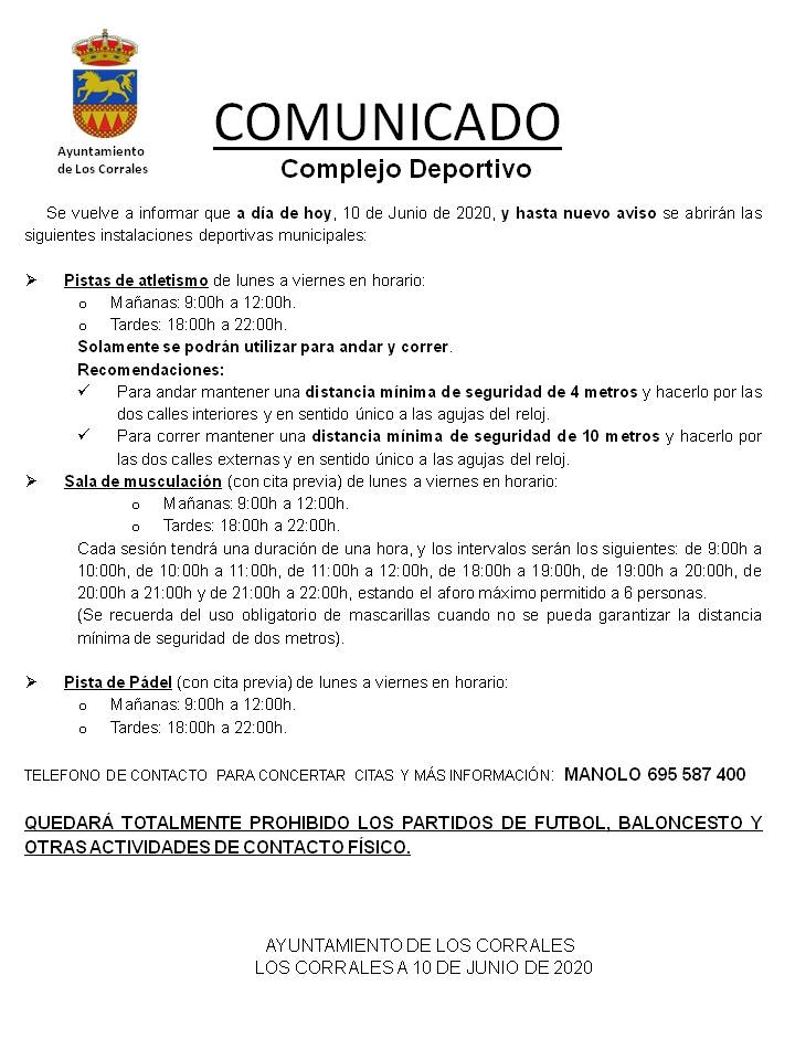 COMUNICADO COMPLEJO DEPORTIVO